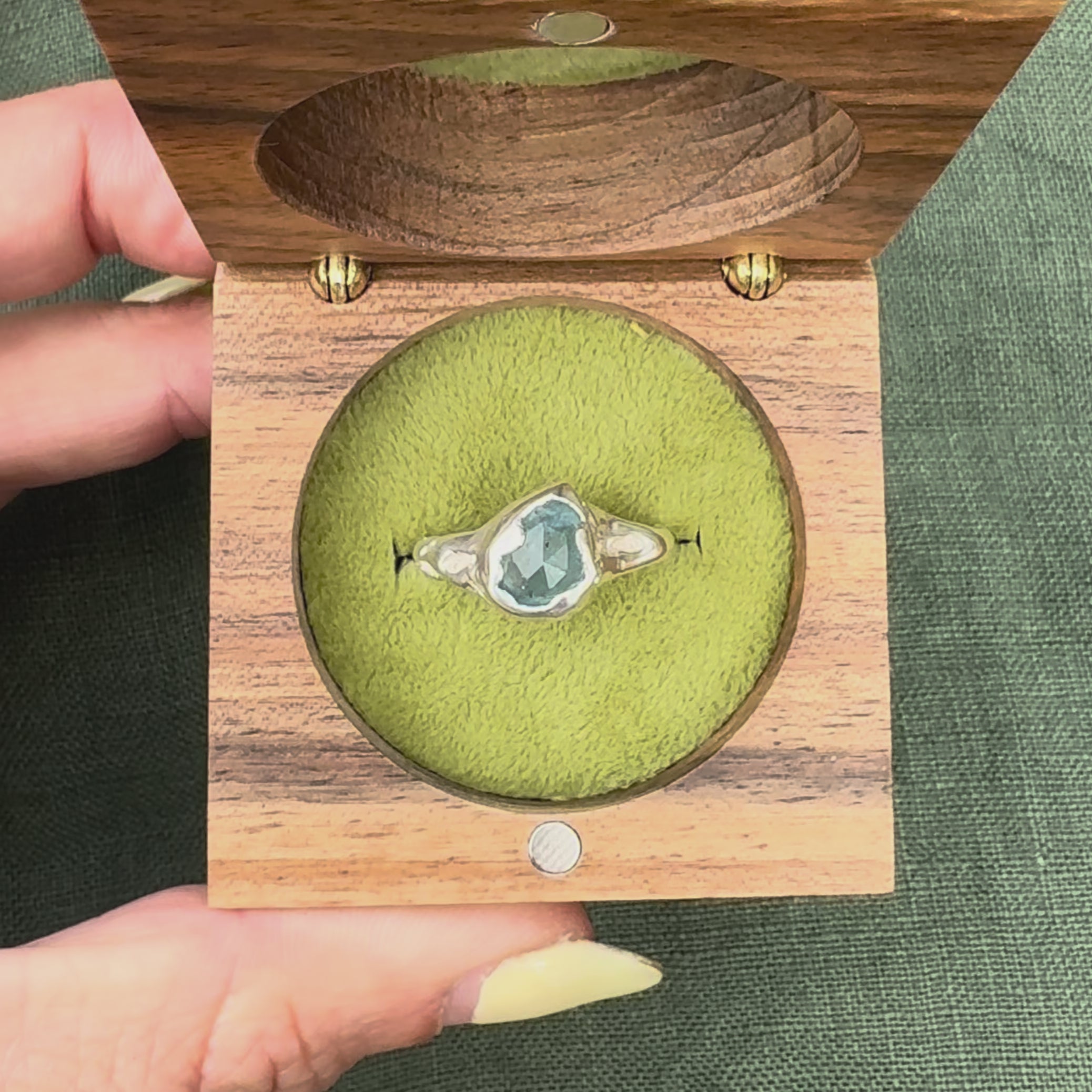 Rose cut pear aquamarine organically set in flowing sterling silver.